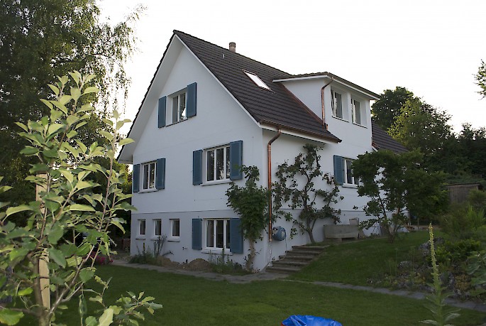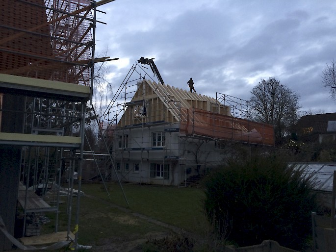 Haus aus den 70er um eine Etage erweitert, Wände und Gauben wurden als Elemente aufgerichtet.