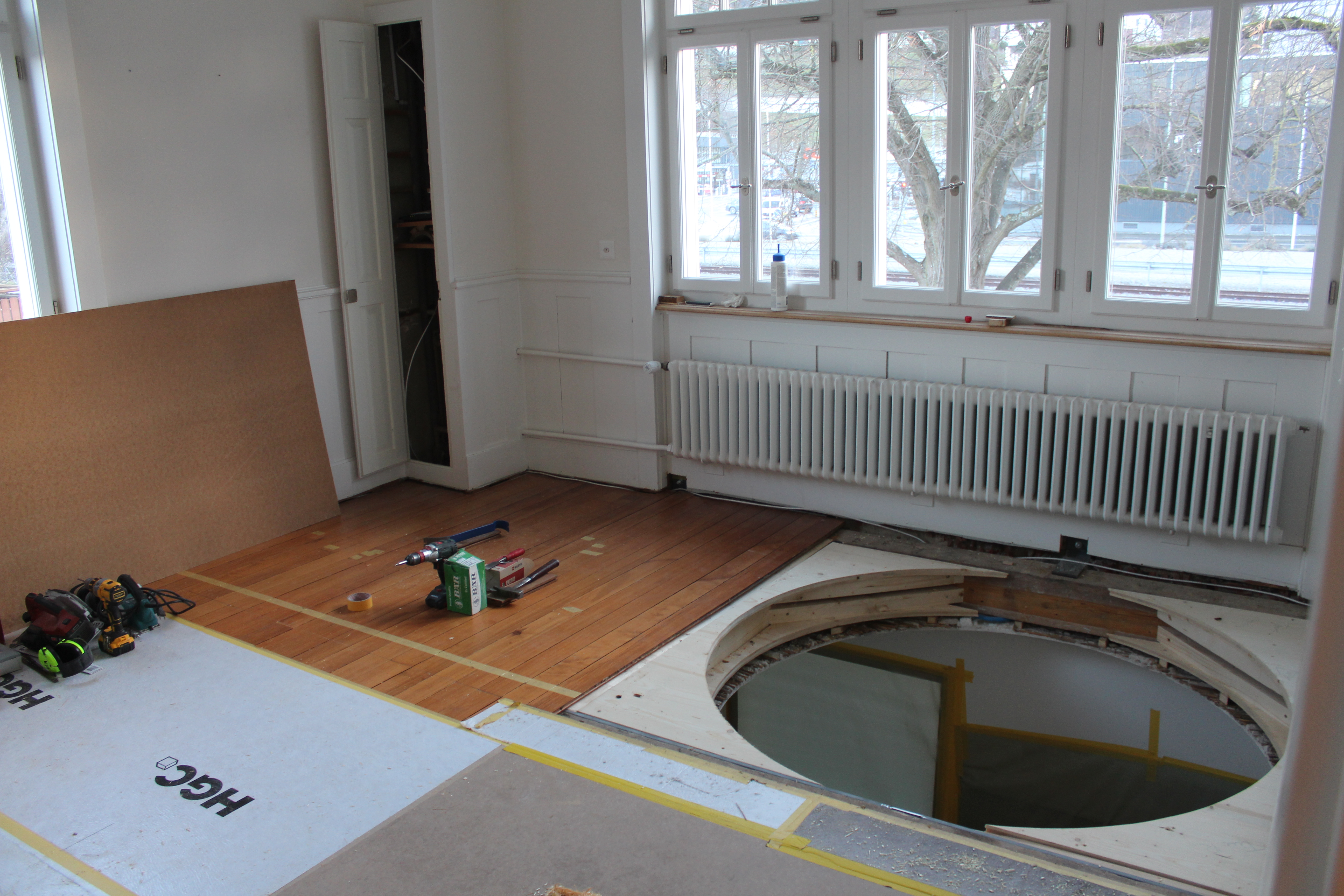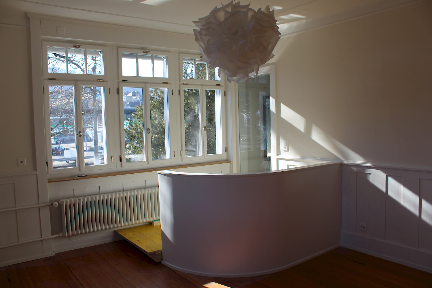Elegante Verbindung zwischen zwei Ebenen in einer Villa am Rhein.