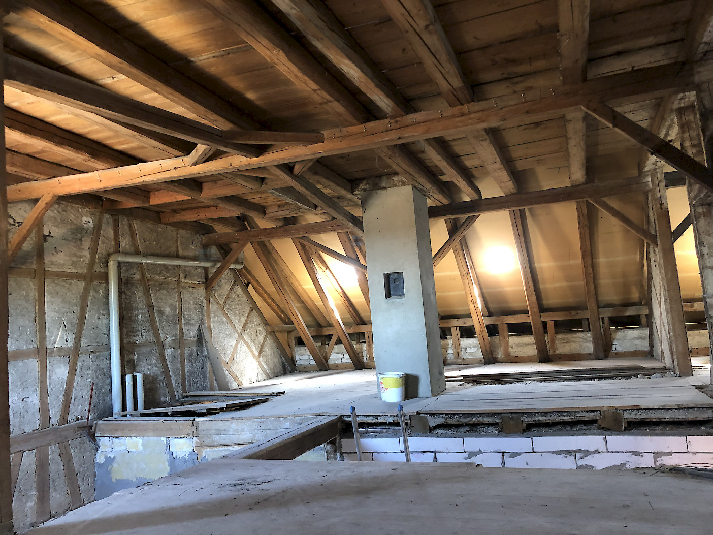 Zweigeschossiger Dachstock in Wohnraum verwendelt.
