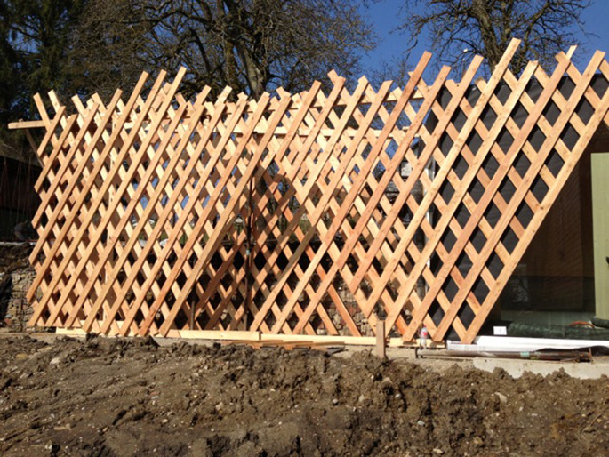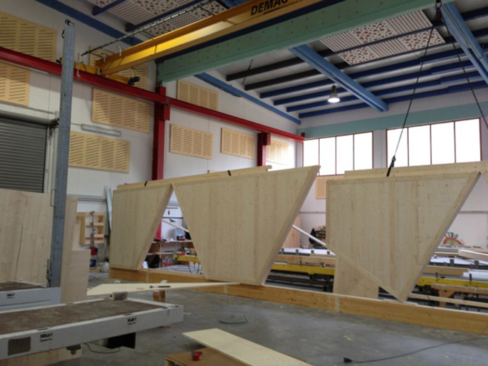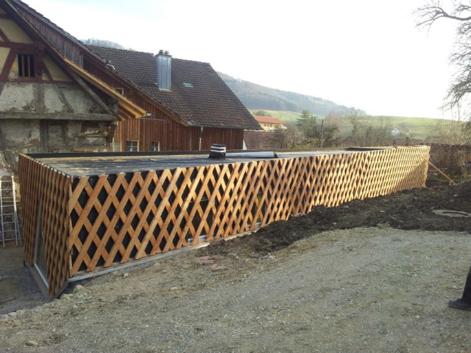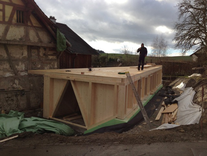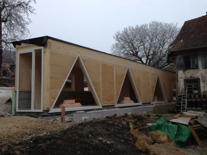 Das Haus wurde im Werk als Elemente vorproduziert und auf der Baustelle zusammengefügt.